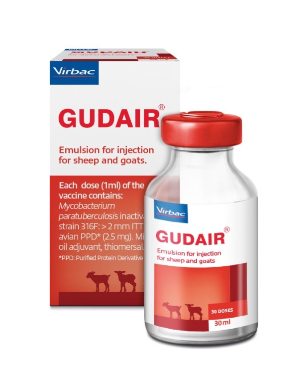 Gudair® emulsion for injection for sheep and goats. Indication(s): For the active immunisation of sheep and goats to stimulate cell mediated and humoral immunity against M.avium species. Paratuberculosis infection, as an aid in the control of Johne’s disease in those species.