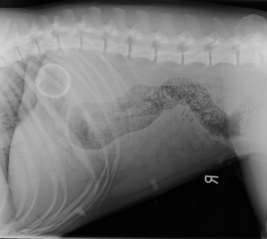 “An X-ray confirmed the location of the ball was still present within Bonnie’s stomach. I was concerned the ball may cause inflammation of the stomach lining (gastritis) or an obstruction in her intestine. So, in order to avoid an operation to remove the ball, Bonnie underwent endoscopy under an anaesthetic.”
