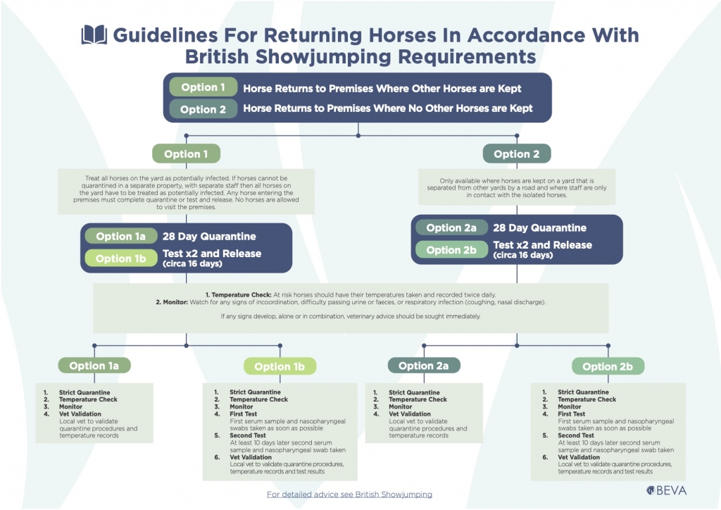 “The consequences of this outbreak have been devastating and understandably, there is anxiety that horses returning to the UK may be carrying the virus and infection may spread back in the UK,” said David Rendle, Chair of BEVA’s Health and Medicines Committee. “To prevent this from happening, it is essential that returning competitors comply with the quarantine plans that have been put in place by British Showjumping.