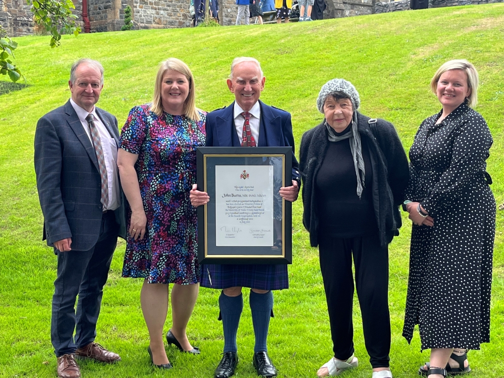 Burns Pet Nutrition and The John Burns Foundation are delighted to announce that John Burns, MBE, BVMS MRCVS, Veterinary Surgeon and founder of the leading healthy pet food company received an Honorary Fellowship for outstanding service to the Community at the University of Wales Trinity St David.