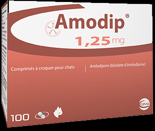 Amodip is a chicken-flavoured, two-way break chewable tablet; its 1.25mg tablet size is perfectly suited for accurate dosing of cats and each tablet’s two-way break allows easier dosing of 0.625mg for smaller cats. Each box contains 100 tablets in blister packs for easy dispensing.