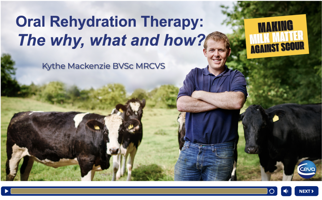Created by Ceva, manufacturer of the popular oral rehydration therapy gel, Rehydion, the module covers the incidence and impact of scour, the management and support of scouring in calves, what an ORT needs to deliver, the significance of ORT timing and the key elements to consider when selecting an ORT. The online presentation also features the importance of continuing to feed milk to scoured animals to provide the necessary energy for maintenance, growth and repair while animals are recovering from scour.