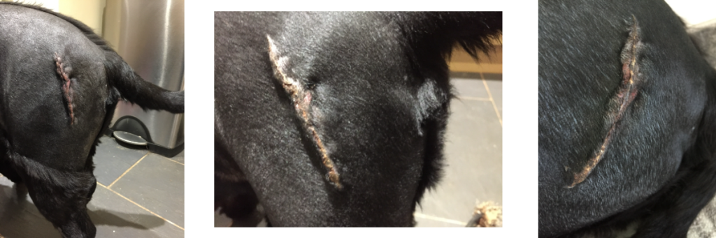 My husband took him to the nearest vet, who sedated him and did an X Ray, which showed that the knock had dislocated his hip, they tried to put it back in but to no avail. Chip was operated on the next day. The following day he came home to rest, but before long he had started to whimper; the hip was really inflamed and it was obviously causing a lot of discomfort.