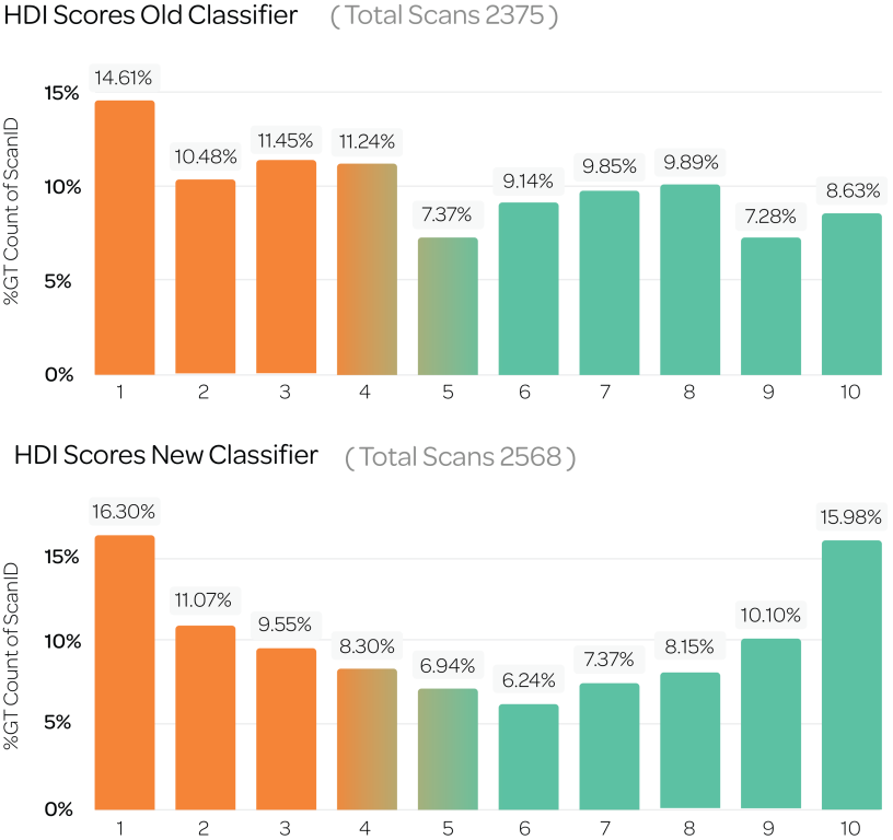 Another observation is that inflammatory processes can sometimes mimic the behaviour of tumours with malignant features. As a result, HT Vista may detect benign cysts with inflammation across the HDI spectrum. While no screening tool is perfect, the results highlight HT Vista's ability to guide clinicians toward better outcomes, all while reducing the invasiveness and costs associated with the incumbent diagnostic method.