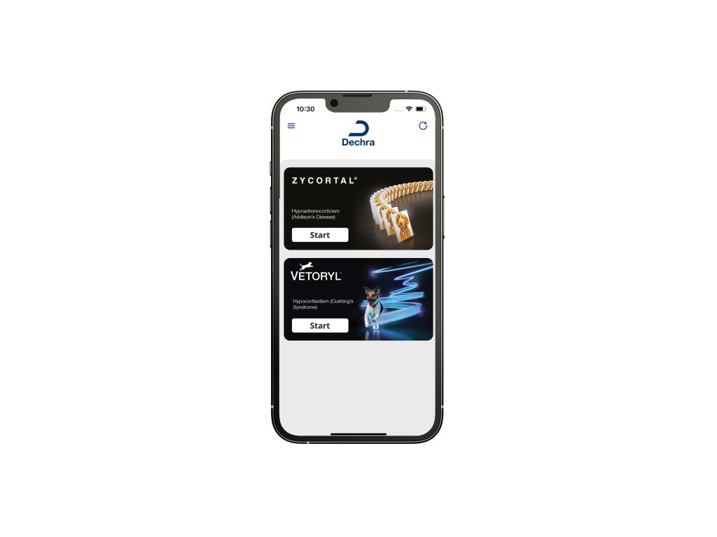 To download the App, search Dechra Endocrinology App on either the Apple App Store or Google Play Store.