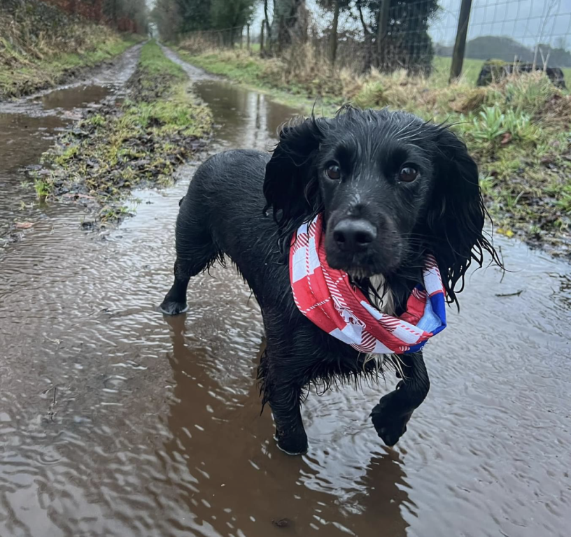 A dog called Indy taking part in a walk for Doddie Aid 2024.