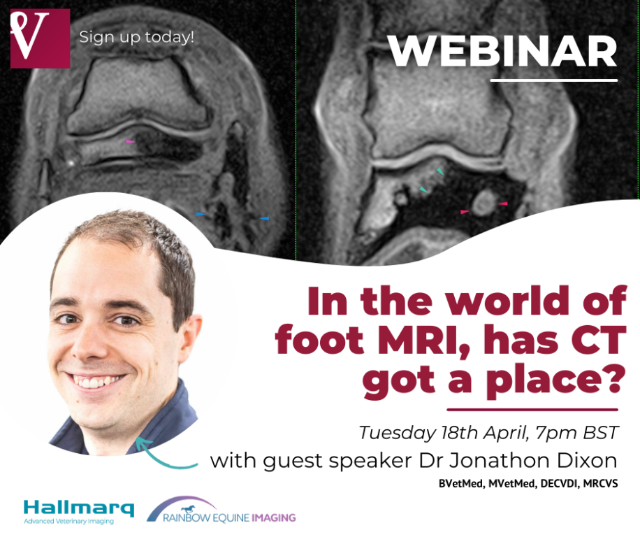 VetCT is hosting the final webinar in its Equine Winter Webinars Series 2023 on the 18th April at 7pm BST. The third webinar in the popular mini-series is titled, “In the world of foot MRI, has CT got a place?” and is presented by guest speaker Dr. Jonathon Dixon, sponsored by Hallmarq. Like the previous webinars, it is aimed at both first opinion and advanced equine clinicians. VetCT and Hallmarq have been raising awareness through the #ImageMoreHorses campaign to highlight that advanced imaging is more accessible than ever to benefit more horses.