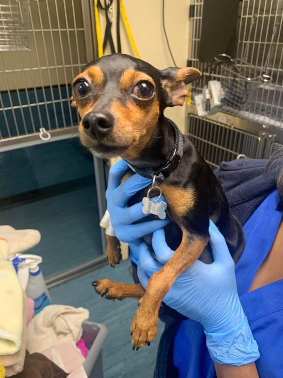 Lola, a three year old Miniature Pinscher, after her ordeal