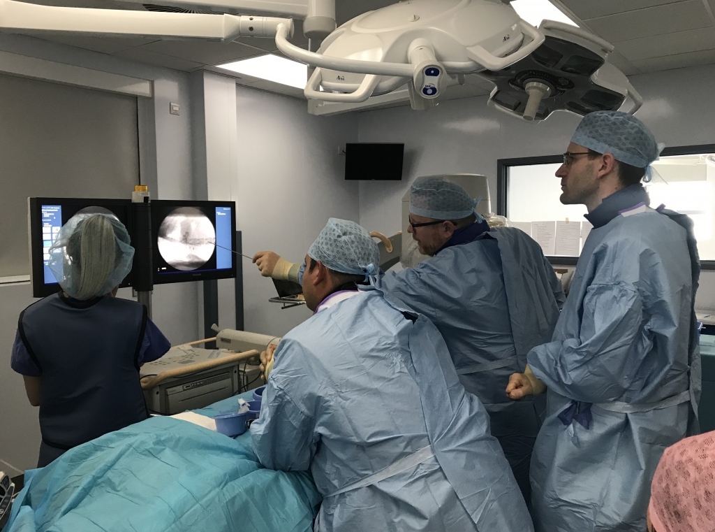 “Throughout the procedure, the team used fluoroscopy equipment, which is similar to watching real-time X-rays, to ensure we were operating on the correct vessels within the liver.