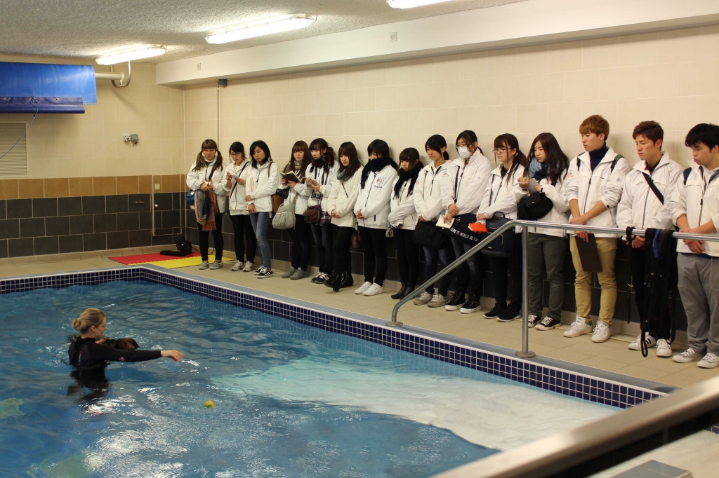 Rehabilitation Team Leader, Fiona Doubleday adds: “I was extremely pleased to welcome the students from Japan and show them around our Rehabilitation Centre. We discussed our inpatient and outpatient physiotherapy service, and talked through the use of physiotherapy equipment as a means to employing various physiotherapy exercises. The students then observed patients in the hydrotherapy pool and underwater treadmill to gain an understanding into the different uses of both areas. The group were all very keen to ask many interesting questions about rehabilitation and the difference in training in the UK. It was an absolute delight to have them visit us and I hope they gained lots of insight into how rehabilitation is integrated into UK veterinary medicine.”