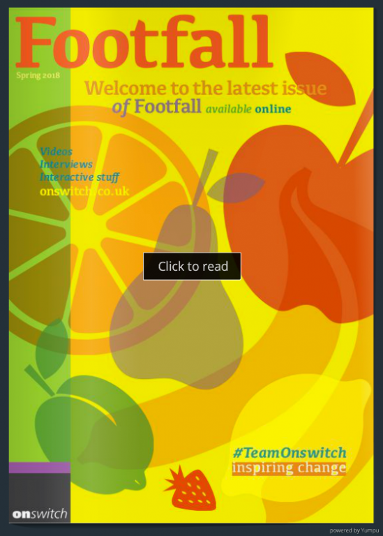 Onswitch's Production Manager, Jane Johnston, summarises the enduring appeal of Footfall. "Each quarter we set out to produce a Footfall that gives practice teams practical help and inspiring real-world examples of people just like them doing great things. Our focus is always on the customer experience - a crucial part of any practice's success. Footfall is designed to be an easy read - a cup of tea and a biscuit are the perfect accompaniments to its bright graphics and punchy copy, for a ten-minute CPD boost!"