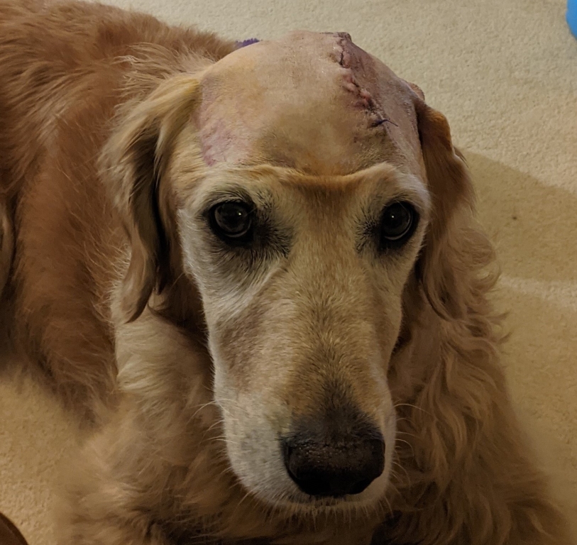 A much-loved golden retriever who had a brain tumour removed is now completely cancer free thanks to a leading Swindon animal hospital.