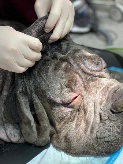 “His vision was poor due to his eyelid conformation and extremely heavy facial folds. He had also developed very sore eyes due to the irritation from his condition.