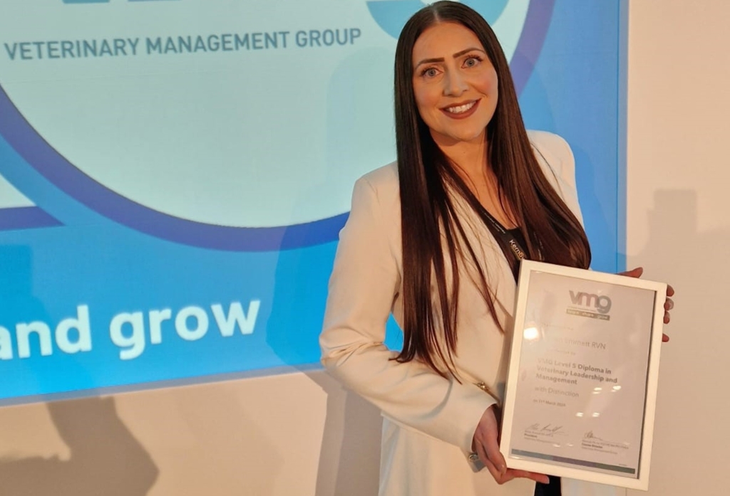 Lauren Emmett, who is head of nursing services at Linnaeus-owned North Downs Specialist Referrals in Bletchingley, earned a distinction in attaining her Veterinary Management Group (VMG) level 5 diploma.