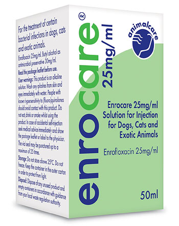Enrocare is a broad spectrum fluoroquinolone antimicrobial that is highly effective in the treatment of a wide range of conditions. It is ready to use and easy to inject with excellent tissue penetration. In the case of dogs and cats just a single daily dose is needed.