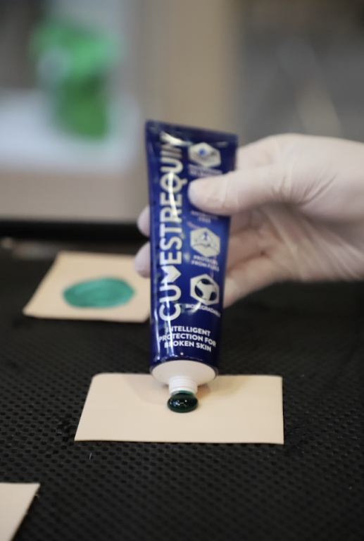 It features a natural polymer combined with copper salts in an ethanol base to provide a waterproof barrier which allows for natural healing underneath. The long-lasting and durable gel barrier can be used anywhere on the skin where a bandage or spray has conventionally been used for protection. The gel will slowly harden but also, where needed, will allow ‘ooze’ from the wound to escape naturally and Cuvestrequin is completely biodegradable. It also offers robust fly protection, which is a unique feature compared with some other products.