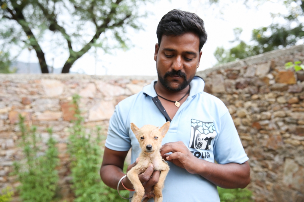 A TOLFA staff member with a puppy