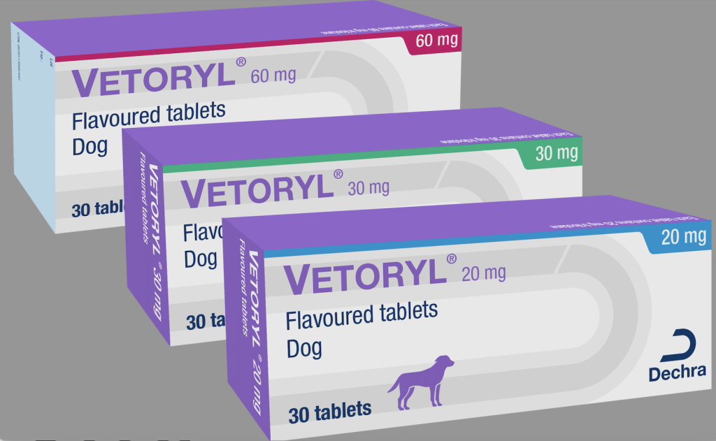 The new Vetoryl Flavoured Tablets for Dogs are hydrolysed chicken flavoured tablets featuring SmartTab technology which allows the tablets to be easily divided into halves or quarters to ensure accurate dosing. They are available as 20mg, 30mg and 60mg tablets alongside the Vetoryl 5mg, 10mg, 30mg, 60mg and 120mg hard capsules and come in packs of 30 tablets.
