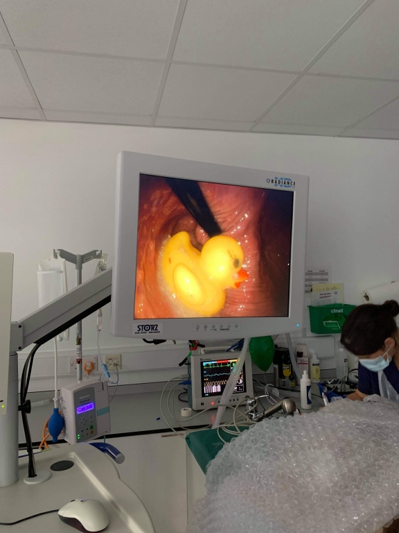“It really was like playing ‘hook a duck’ and after about half an hour we got the loop around it and pulled it out. It was a combination between the first opinion team and also our referral medicine department who carried out the successful procedure to remove the duck.”
