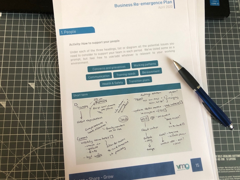 The VMG’s Business Re-emergence Manual guides users through each of these areas, encouraging them to consider the factors most relevant for their organisation. It also focuses them into thinking about short-term, medium-term and long-term priorities.