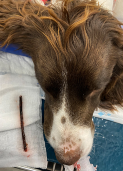 A top vet at one of the leading small animal hospitals in the north has expressed her amazement after retrieving an 8cm stick from the nose of a young springer spaniel.