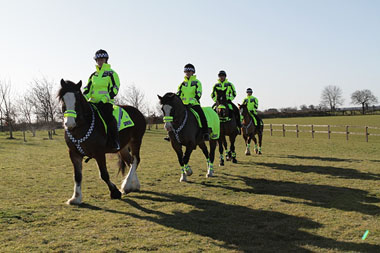 Our Field Officer Jacko Jackson was asked by the Constabulary to assist with providing competency assessments for four officers to ensure they had the necessary riding skills, as well as assessing their horses. Justina Smith who is Assistant Manager at World Horse Welfare’s Hall Farm Rescue and Rehoming Centre in Snetterton also carried out the training session yesterday (Sunday 19 February 2012).