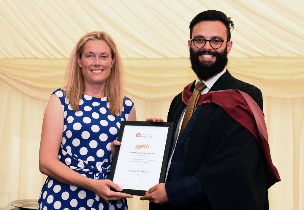 London, UK – August 09, 2019 – Zoetis Inc. has shown its support for the extramural studies programme (EMS) at the University of Bristol by providing awards in recognition of the contribution practices make and the commitment shown by veterinary students and veterinary nursing students. The awards, comprising academic book vouchers, were presented at the University’s RCVS ceremony after graduation earlier this month.